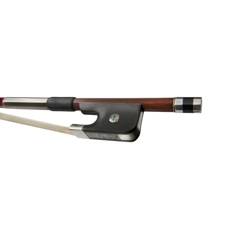 Peccate model double bass bow with a Pernambuco stick, silver mounted ebony frog.